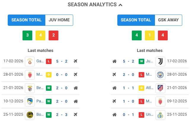 Stats BEFORE the game Juventus vs Galatasaray