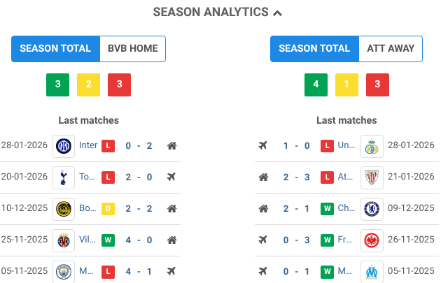 Stats BEFORE the game Borussia Dortmund vs Atalanta