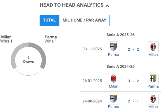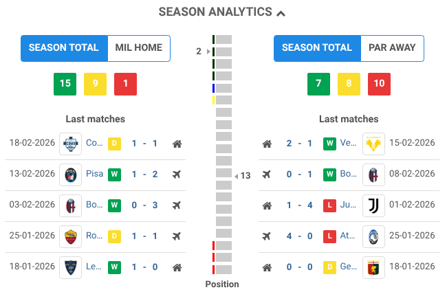 Stats BEFORE the game AC Milan vs Parma