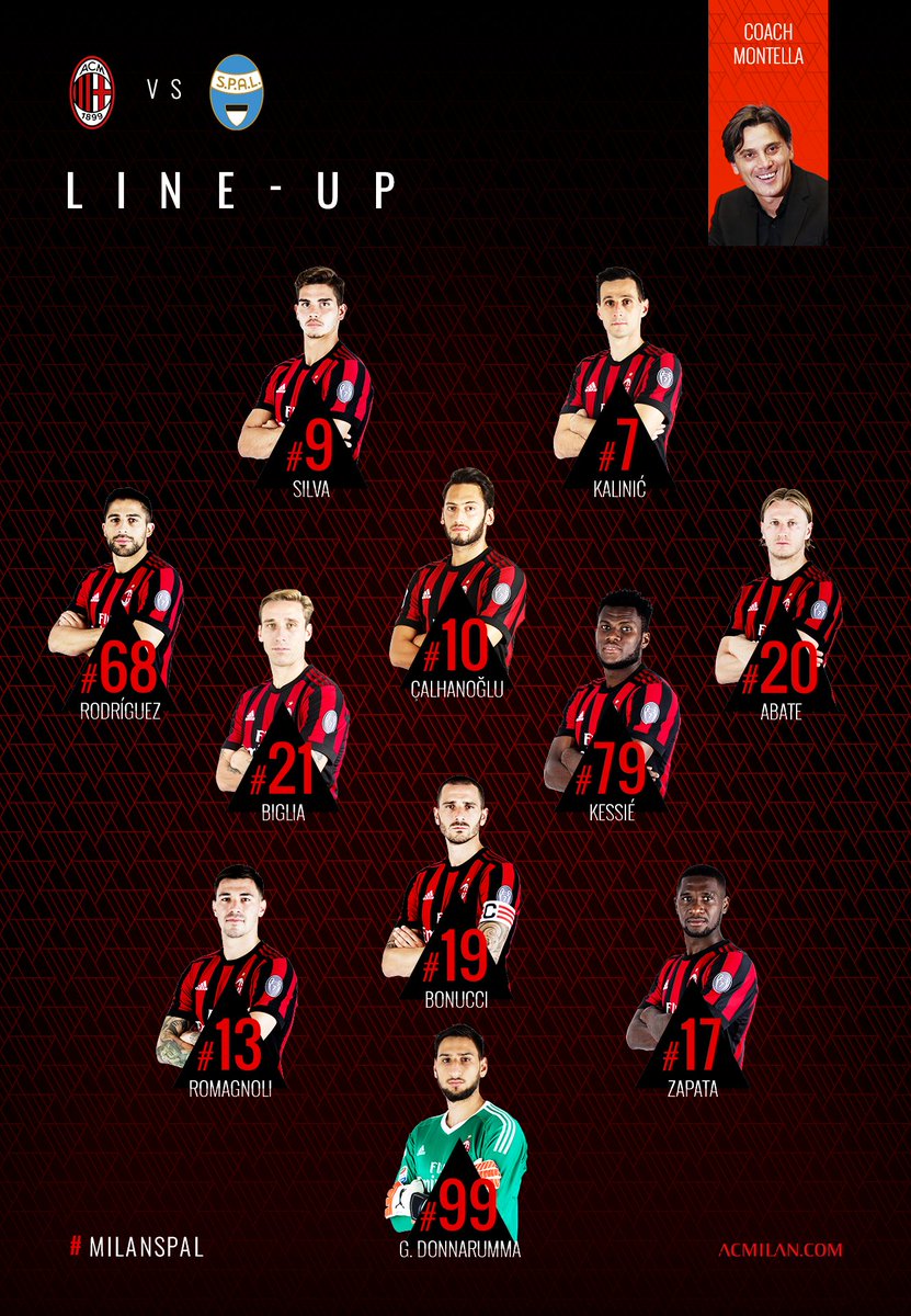 Here are AC MILAN vs SPAL official starting lineups – formations for the Serie A Week 5 game on Wednesday 20 September 2017 at the San Siro Stadium in Milan, Italy at 20:45.