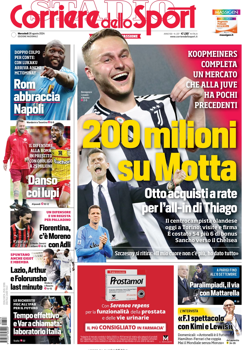 Corriere dello Sport, Front Page, Wednesday 28 August 2024