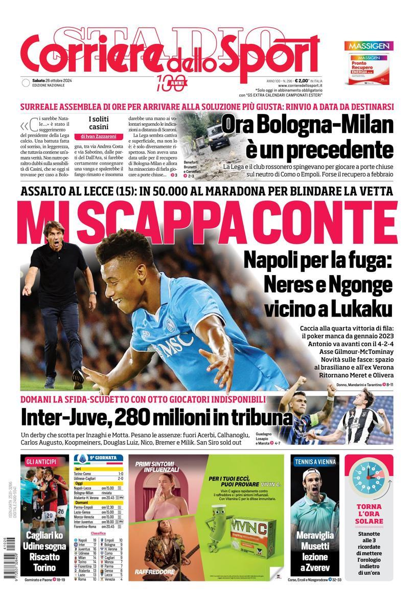 Front Page Corriere dello Sport, Saturday 26 October 2024