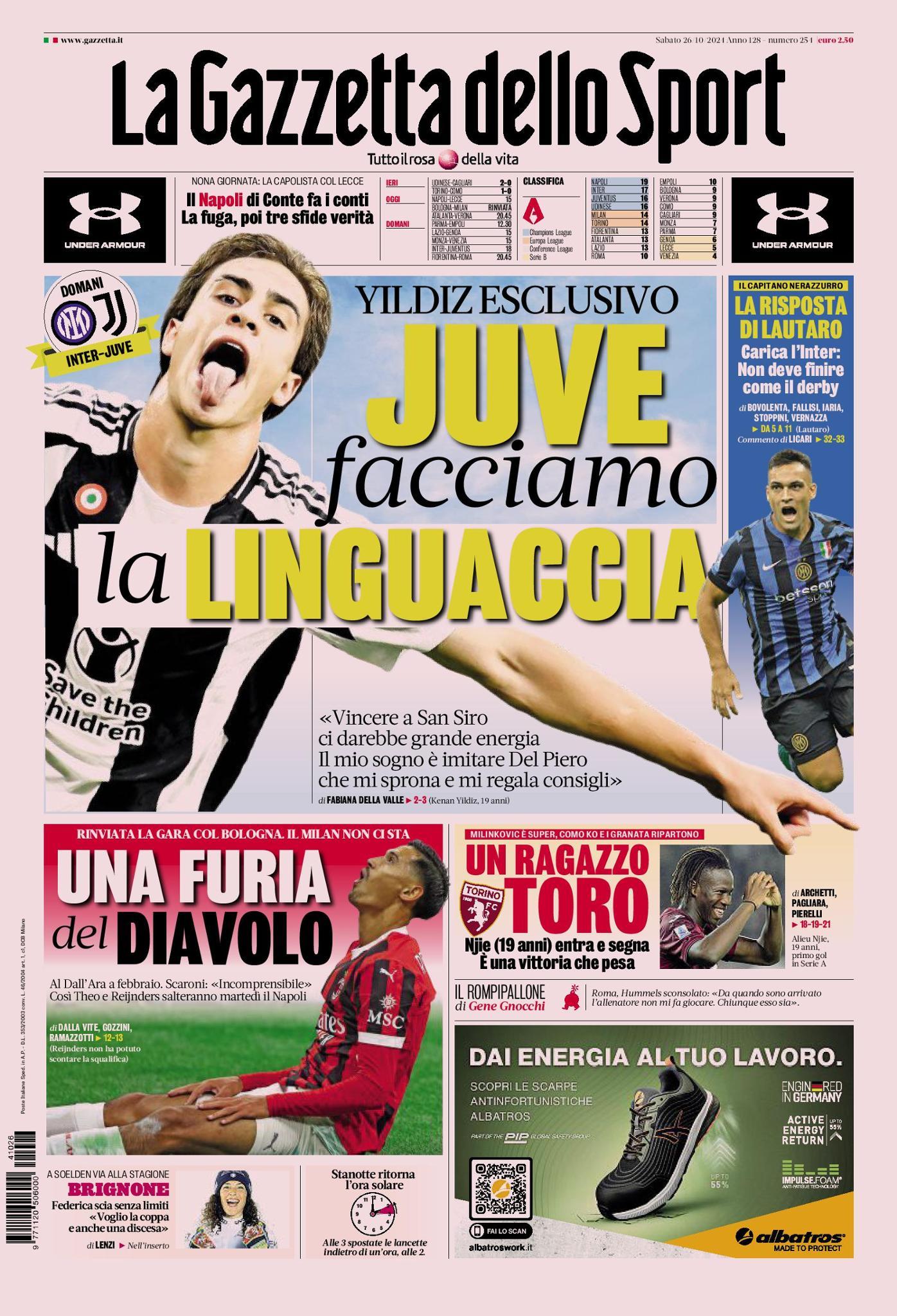 Front Page La Gazzetta dello Sport, Saturday 26 October 2024