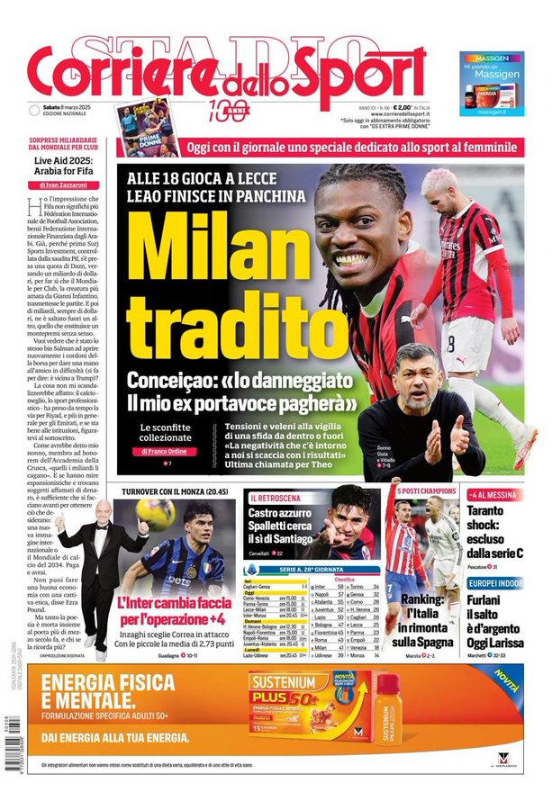 Front Page Corriere dello Sport, Saturday 8 March 2025