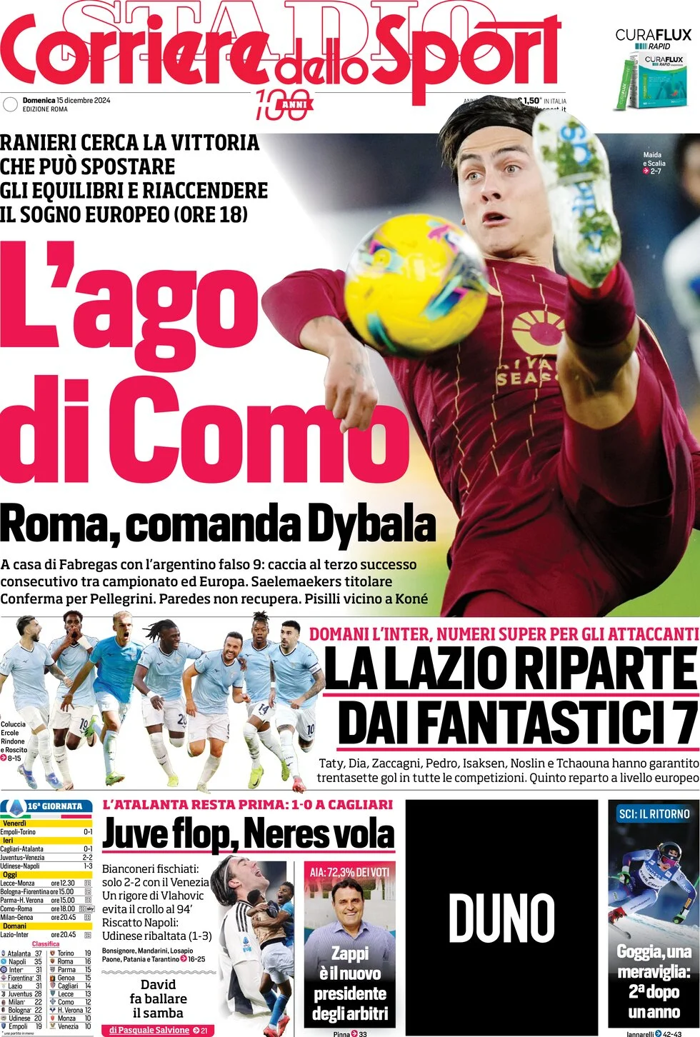 Front Page Corriere dello Sport, Sunday 15 December 2024