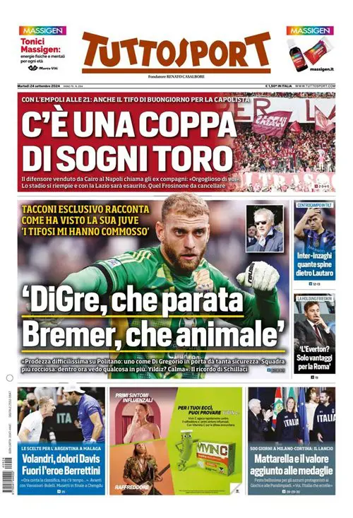 Front Page Tutto Sport, Tuesday 24 September 2024