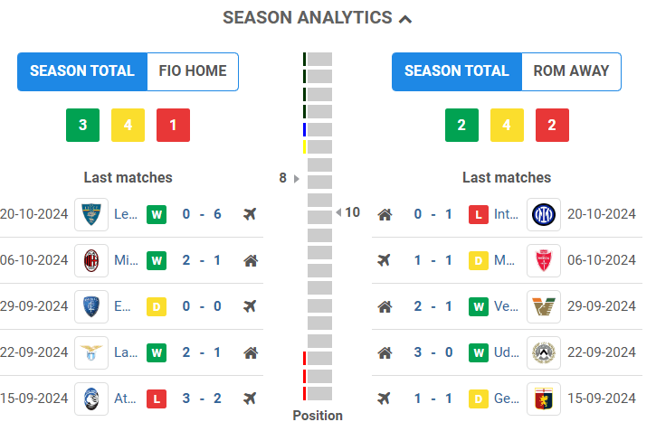 Previously, Fiorentina has managed to secure only two wins in their last 12 encounters with Roma in Serie A (with 4 draws and 6 losses).