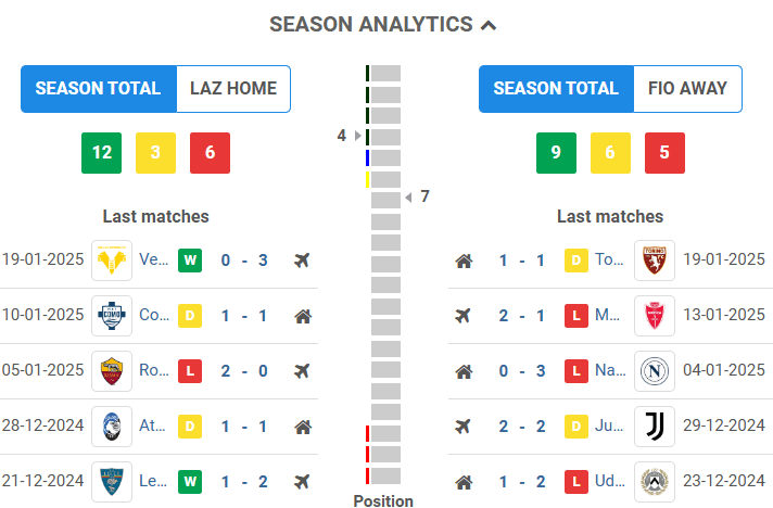 Fiorentina has secured victories in their last two league matches against Lazio, winning 2-1 in both February and September 2024 at the Franchi. The last time the Viola managed to achieve more consecutive wins against the Biancocelesti in Serie A was between December 2006 and March 2008, when they won four times in a row.