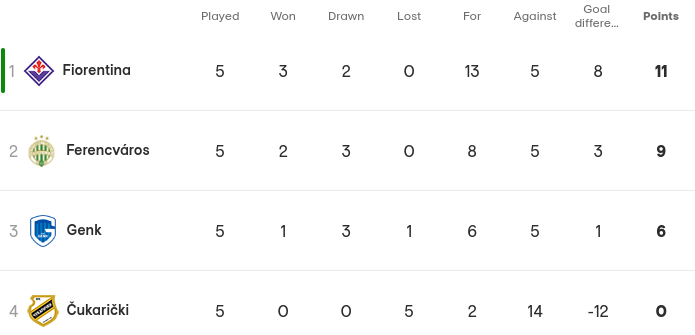 In the next round, Fiorentina will play against Ferencvaros, while Genk will face Cukaricki.