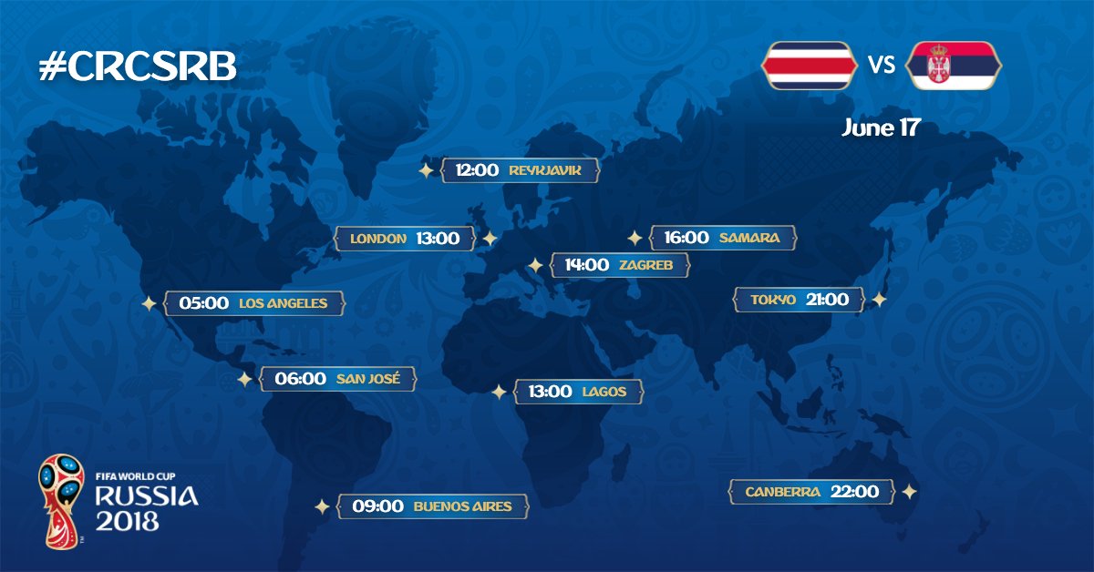 FIFA announcing COSTA RICA vs SERBIA match officials for the FIFA World Cup First Stage Group C game on Sunday 17 June, 2018 at the Samara Arena in Samara, Russia at 16:00 local time. It is Referee Malang Diedhiou from Senegal to direct the game.