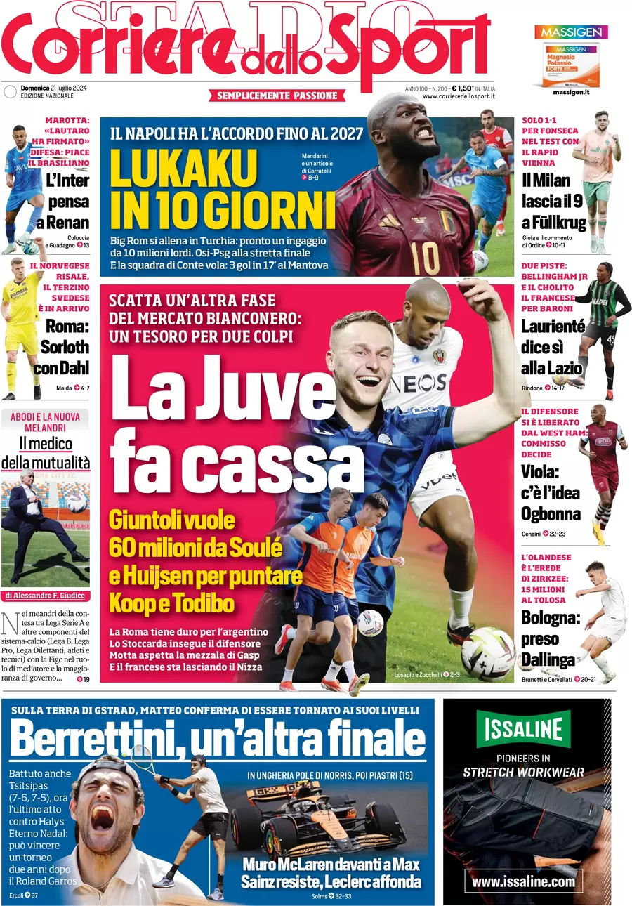 Corriere dello Sport, Front Page, Sunday 21 July 2024