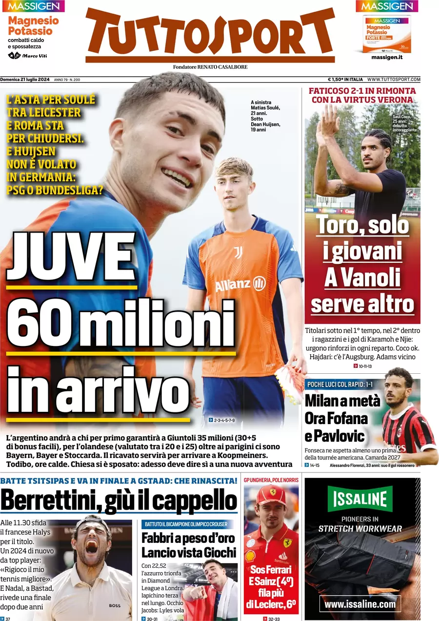Tutto Sport, Front Page, Sunday 21 July 2024