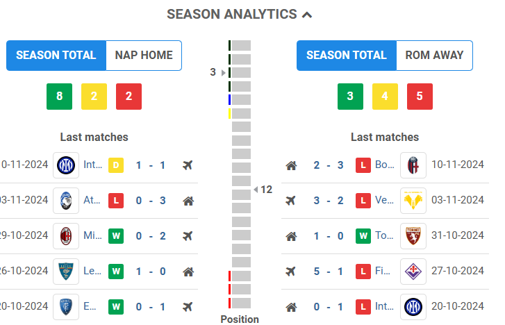 Stats remain the same. Last season, Roma managed to stay unbeaten in both encounters with Napoli, winning 2-0 at the Olimpico in December 2023 and drawing 2-2 at the Maradona in April. This marks their longest unbeaten streak against Napoli in Serie A since the 2015-2016 season, where they went four matches without a loss (3 wins, 1 draw). On the other hand, Napoli has not lost at home to Roma in their last six league meetings (3 wins, 3 draws), with Roma’s last away victory against them dating back to March 3, 2018, when they won 4-2 under coach Eusebio Di Francesco.