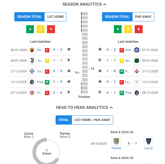 Lecce vs Parma Official Lineups, Sunday 11 January 2026, Serie A Week 20