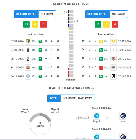 Inter vs Napoli Official Lineups, Sunday 11 January 2026, Serie A Week 20