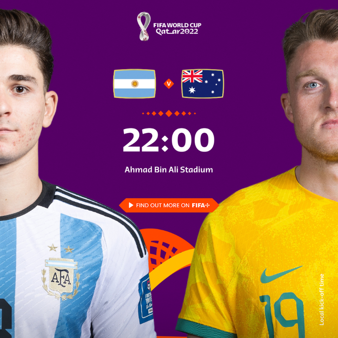 🏆👉 Argentina win the FIFA World Cup Round of 16 against Australia on Saturday 3 December 2022 at the Ahmed bin Ali Stadium (Al-Rayyan) in Al Rayyan, Qatar. For Argentina, now, the Quarter-final against the Netherlands. Argentina delighted millions of fans worldwide. The victory thanks to the goals by Lionel Messi and Julián Álvarez. Argentina continue their adventure. Australia salute this World Cup playing with determination but not enough to win. The honor goal for Australia was scored by Craig Goodwin.