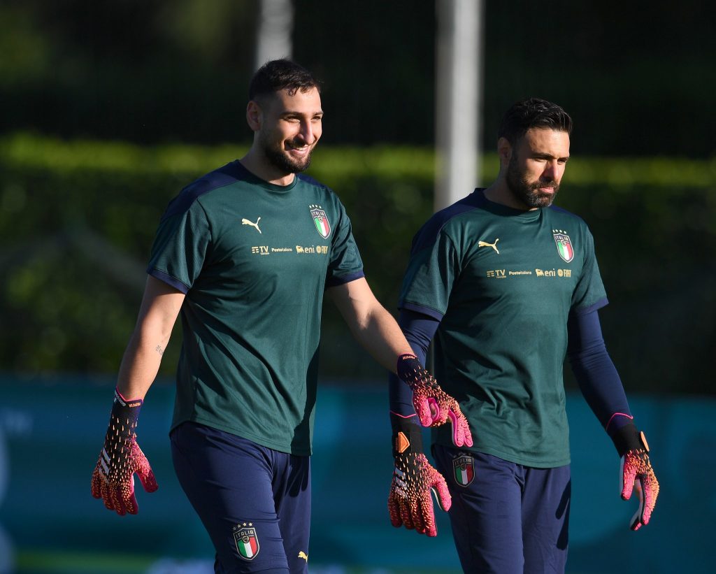 Italy goalkeepers Gianluigi Donnarumma and Salvatore Sirigu consciously preparing to stop all goals against England.