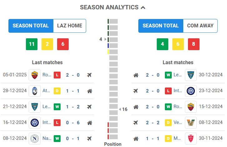 In their last six league outings, Lazio has only gathered seven points, with two wins, one draw, and three losses. Remarkably, Como has outperformed Lazio during this stretch, earning eight points despite having played one game less. After a streak of five straight victories, Lazio has only managed to earn one point from their last two home league matches (one draw and one loss) and hasn’t gone winless in three consecutive home Serie A games since early 2024, when they had a four-match winless run (one draw and three losses) under Maurizio Sarri.