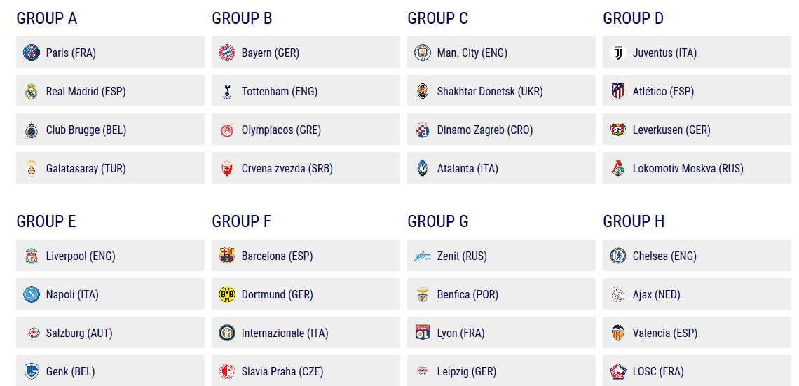 — #UCLdraw (@ChampionsLeague) August 29, 2019