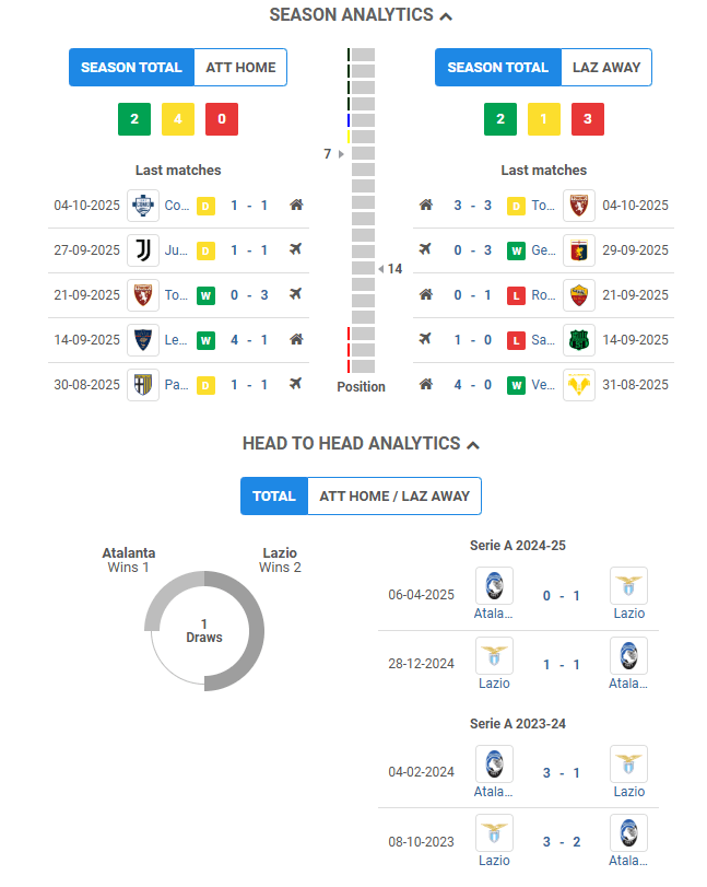 Atalanta vs Lazio Official Lineups, Sunday 19 October 2025, Serie A Week 7