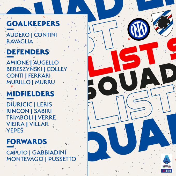 ✅ Here are Sampdoria 24 official called up players by Coach Dejan Stanković for the game against Inter: