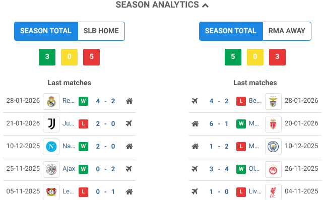 Stats BEFORE the game Benfica vs Real Madrid