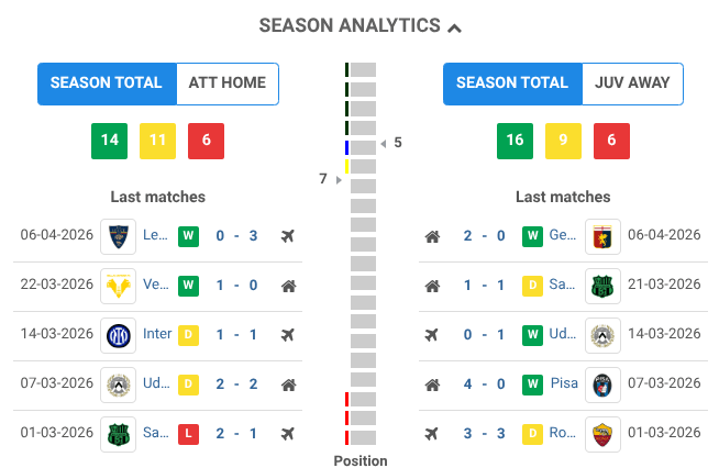Stats BEFORE the game Atalanta vs Juventus