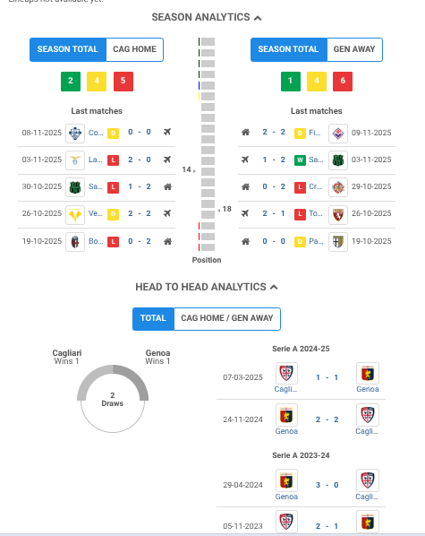 2025– 2026 Italian Serie A Week 12Cagliari 3 - 3 Genoa