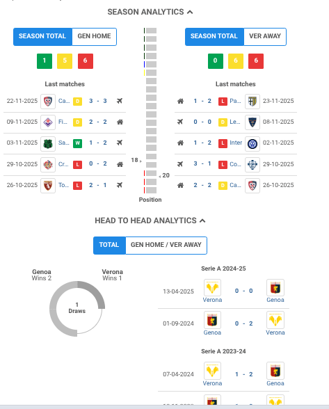 Genoa vs Hellas Verona playing on Saturday, November 29, 2025 for Serie A Week 13. The match will take place at the Luigi Ferrari Stadium in Genoa, Italy, starting at 15:00.