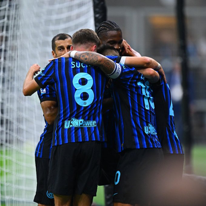 ⚫️🔵 Lineup INTER (3-5-2): 1 Sommer; 31 Bisseck, 15 Acerbi (14 Bonny 83'), 95 Bastoni; 2 Dumfries, 23 Barella (7 Zielinski 83'), 20 Calhanoglu (94 Esposito 68'), 8 Sucic (22 Mkhitaryan 63'), 32 Dimarco (30 Carlos Augusto 83'); 9 Thuram, 10 Lautaro.