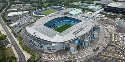 Etihad Stadium Photo credits. Autor: Arne Müseler / www.arne-mueseler.com License: CC BY-SA 3.0 (https://creativecommons.org/licenses/by-sa/3.0/) Opened:2002Capacity:53400Address:Ashton New Rd, Manchester M11 3FF, UK
