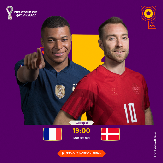 Stats before the game: This will be the fourth meeting between France and Denmark at the World Cup, all in the group stage. Les Bleus have won the tournament on two of the previous occasions they have faced Denmark (1998 and 2018), with the other coming as holders in 2002. Denmark have won their last two meetings with France in all competitions, both in the 2022 Nations League. The red and white have never achieved three in a row against Les Bleus, while neither side have ever beaten France three times in the same calendar year. This is the third time Denmark have faced the reigning world champions at the World Cup: they lost 3-2 to Brazil in the 1998 quarter-finals, before winning against France 2-0 in the 2002 group stage. France have won all of their last five World Cup matches and have never achieved six in a row in the tournament, the last country to do so was Spain in 2010.