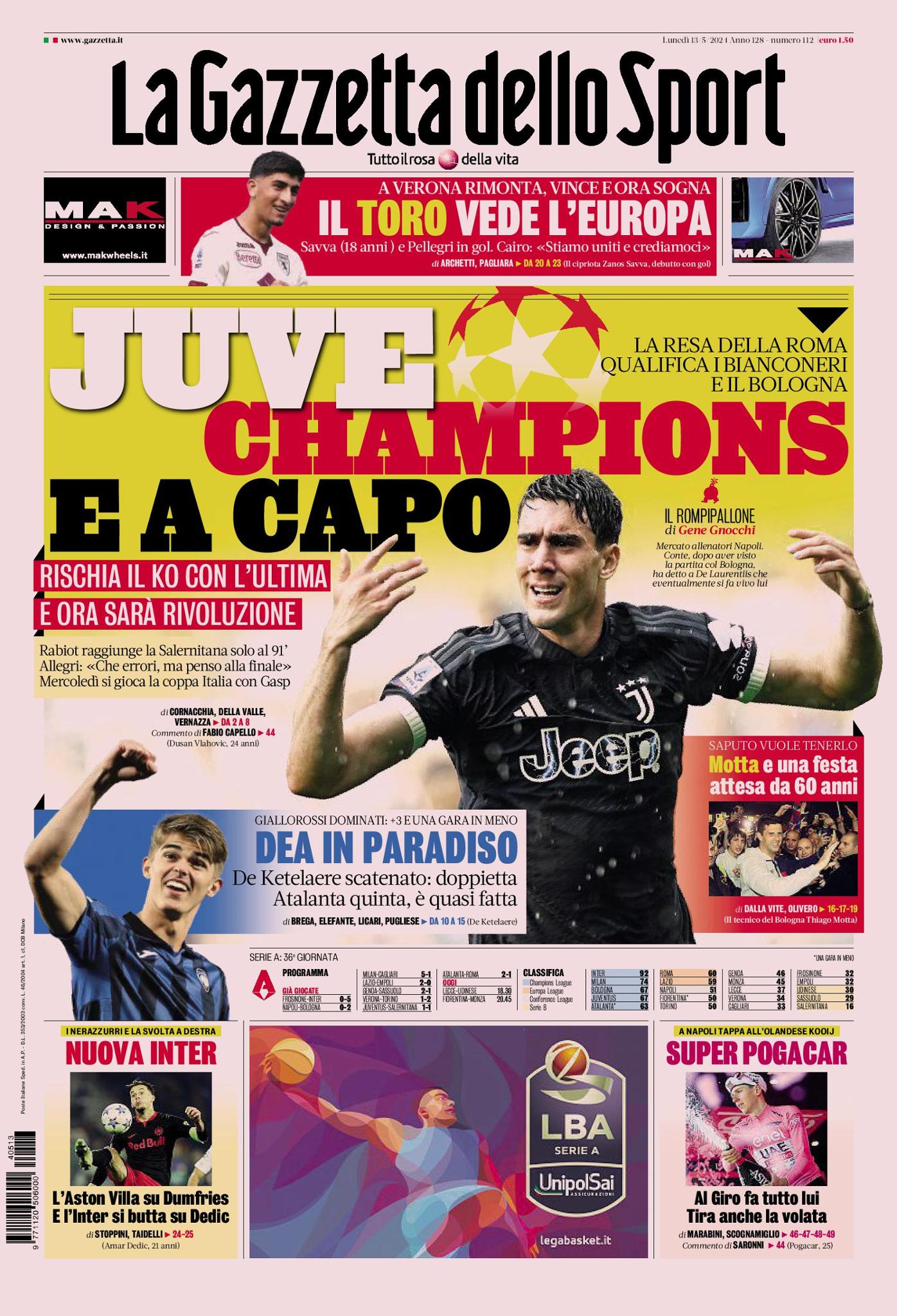 Tutto Sport, Front Page, Monday 13 May 2024