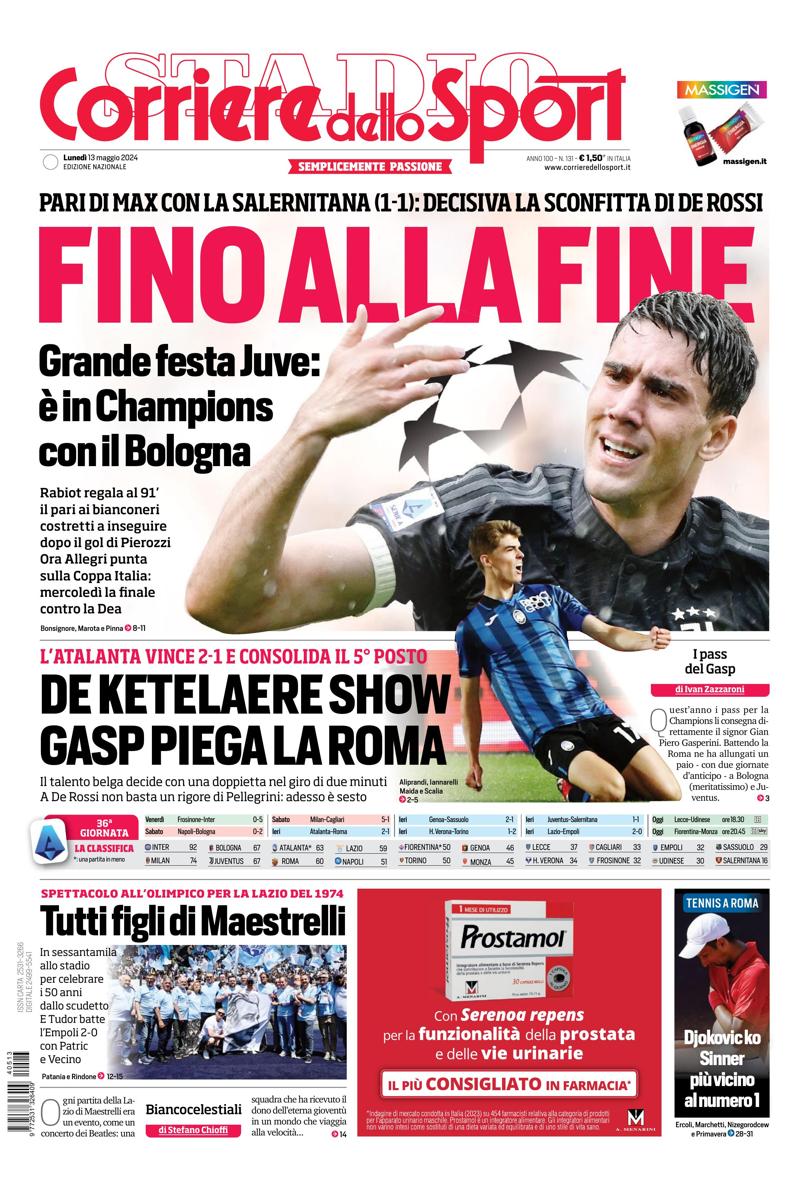Corriere dello Sport, Front Page, Monday 13 May 2024