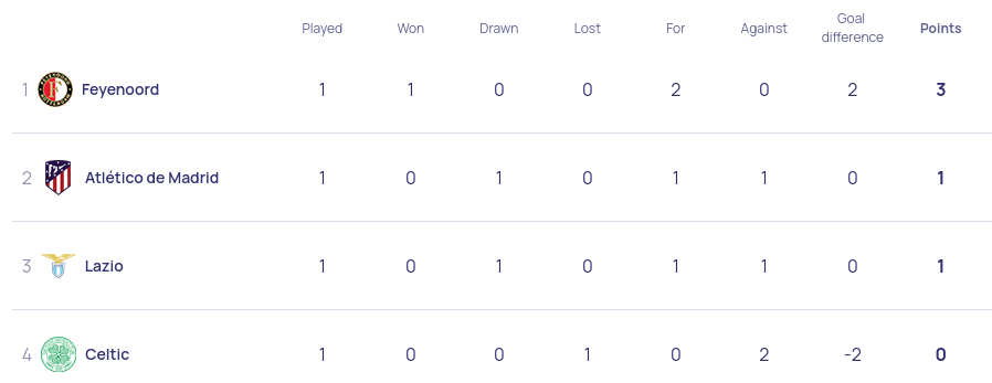Stats before the game: This will be the first ever meeting between Lazio and Atlético Madrid in the Champions League. The last time they met was in the round of 32 of the 2011/12 Europa League, with the Spanish team winning 3-1 in Rome and 1-0 at home. Atlético Madrid have lost three of their last five Champions League matches against Italian teams (W1, D1), after remaining unbeaten in their first seven matches against these opponents (W5, D2). On the other hand, Lazio have won only one of their six matches against Spanish opponents in the tournament (2N, 3L). After being eliminated in the group stage in three consecutive editions of the Champions League (2001-02, 2003-04 and 2007-08), Lazio remained unbeaten at this stage of the tournament in their last participation in 2020-21, qualifying for the round of 16 (2W, 4D). Lazio have always conceded goals in their last 19 Champions League matches, following the 2-0 win at Besiktas in September 2003. This is the longest streak without a clean sheet among Italian teams in the competition, equal to that of Rome (19 between 2010 and 2015). Atlético Madrid did not get past the group stage in last season’s Champions League and have never been eliminated from the group stage in two consecutive editions of the tournament.