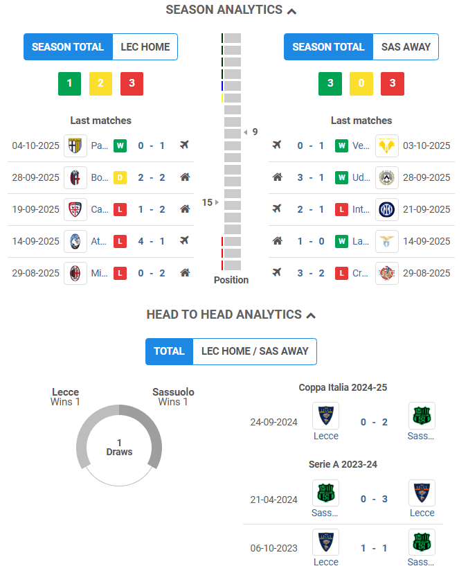 Lecce vs Sassuolo Official Lineups, Saturday 18 October 2025, Serie A Week 7