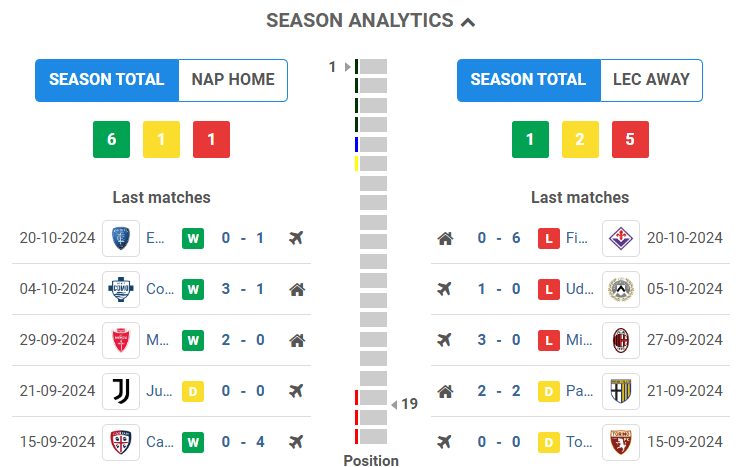 They have a strong record against Lecce, remaining unbeaten in their last four encounters (2 wins, 2 draws) and not allowing any goals in the last two matches. Interestingly, Napoli has never achieved three consecutive clean sheets against Lecce in Serie A history.