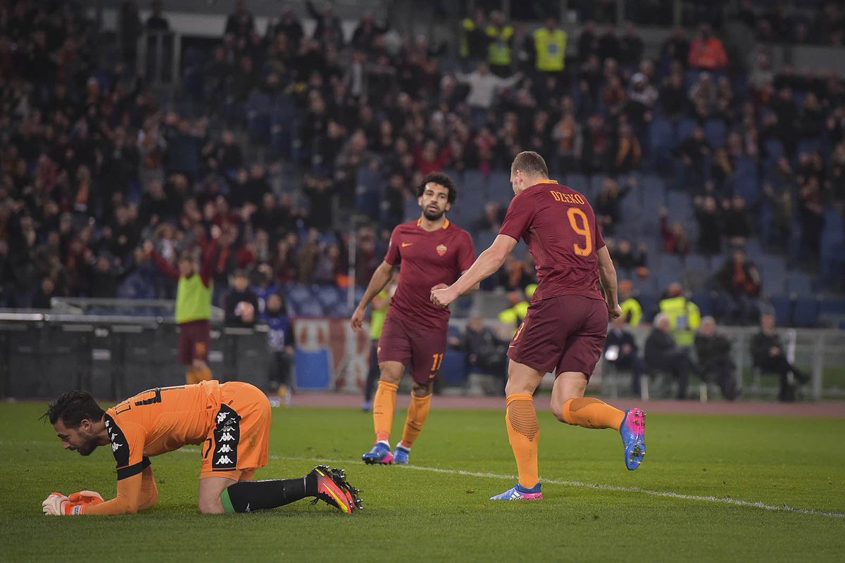 Goals: 9′ Gregoire Defrel (S), 16′ Leandro Paredes (R), 45′ Mohamed Salah (R), 68′ Edin Dzeko (R)