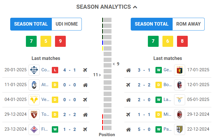 The Friulians’ only victory in this stretch was a significant 4-0 win at home on September 4, 2022. Additionally, Roma has been strong on the road. They are unbeaten in 10 of their last 12 away games against Udinese (with 8 wins and 2 draws), bouncing back after losing three of the previous four. Following their recent defeat to Como, Udinese risks losing two consecutive Serie A matches for the first time since last October-November, when they lost three in a row.